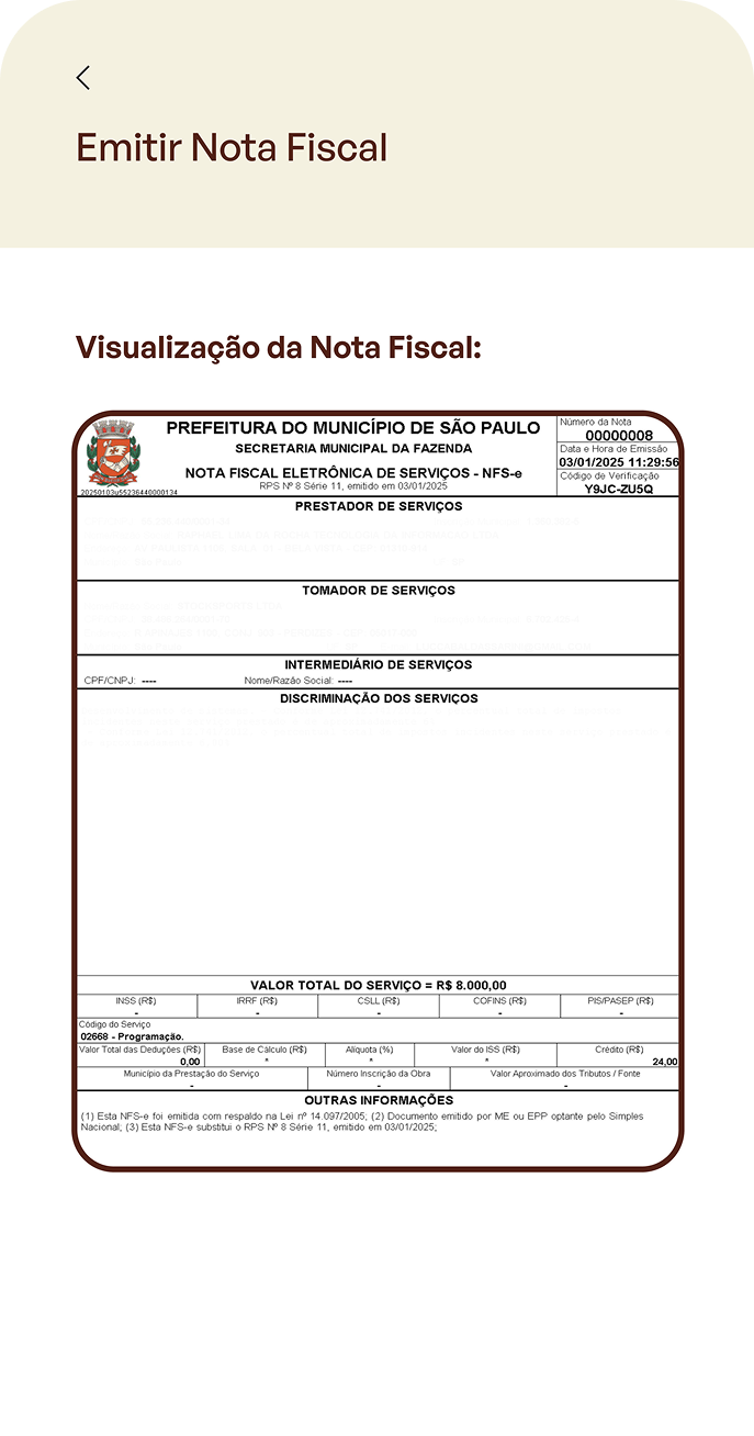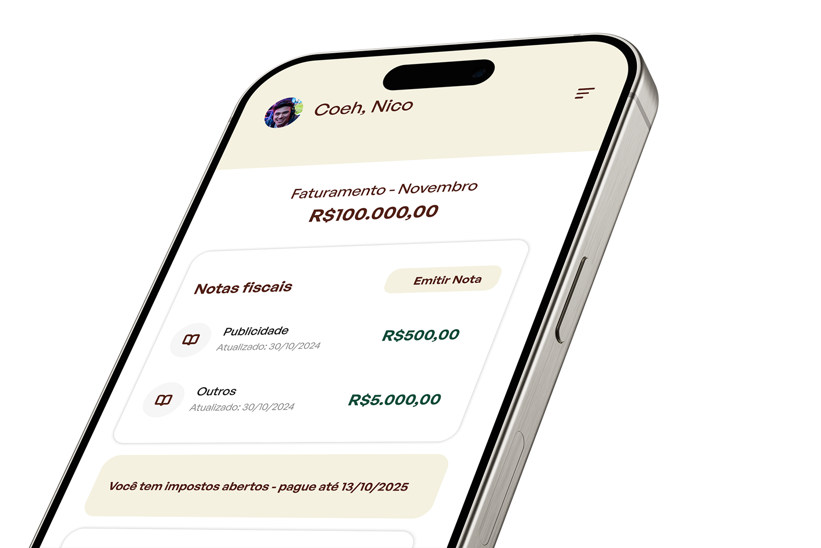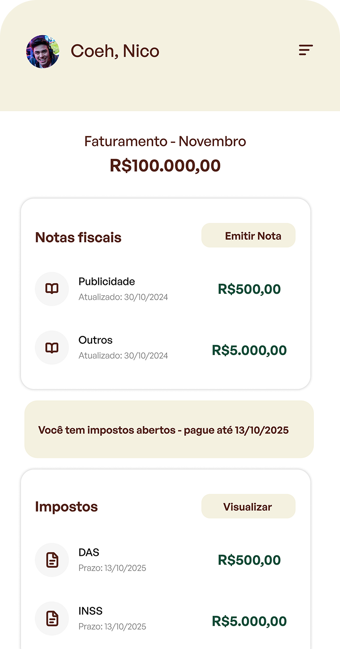 Você emite as NFs e gerencia impostos direto pela plataforma